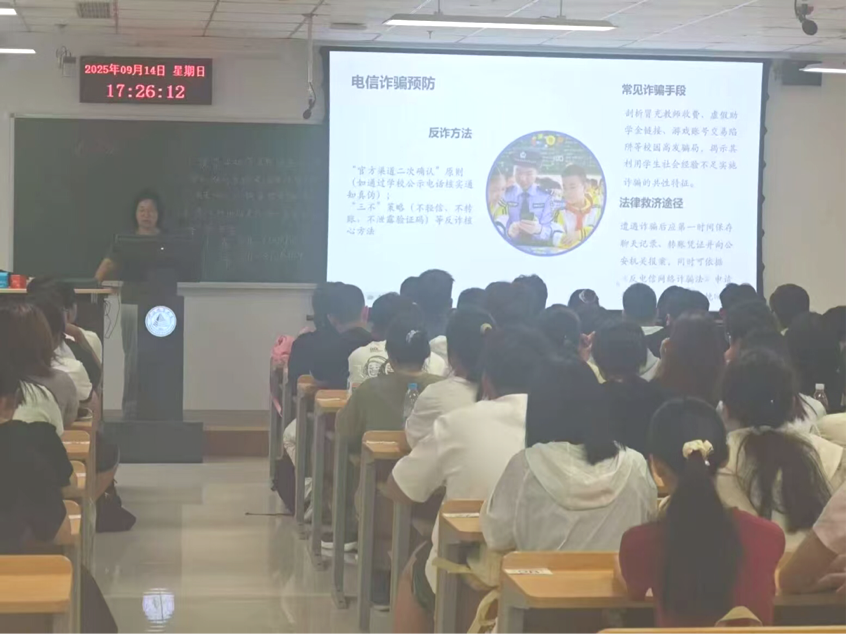 法政学院以法治“开学第一课”为主题召开班会,做到全院全年级学生全覆盖。班会围绕预防电信诈骗、警惕网络谣言等法治教育核心内容,辅导员讲授《中华人民共和国宪法》、《中华人民共和国刑法》、《中华人民共和国民法典》等法律法规,结合近年高校高发案例,深入剖析刷单返利、冒充电商客服、游戏账号交易诈骗及“校园贷”“培训贷”等典型骗局,聚焦大学生常见法律风险,为学生筑牢反诈思想防线。